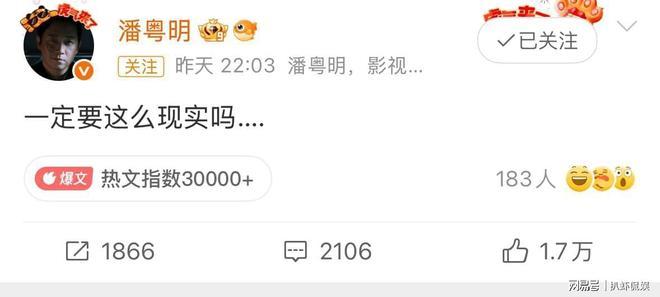 3月7日晚间,潘粤明在社交平台发文,称:一定要这么现实吗……