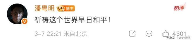 潘粤明也在评论区回复,祈祷这个世界早日和平。