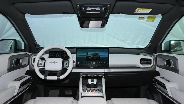 外观方面,新车沿用现款车型设计,前脸依然次啊用半方块状的大灯组+黑色饰板+方程豹LOGO组合,形成贯穿式设计,看上去酷似倒“凸”字形。