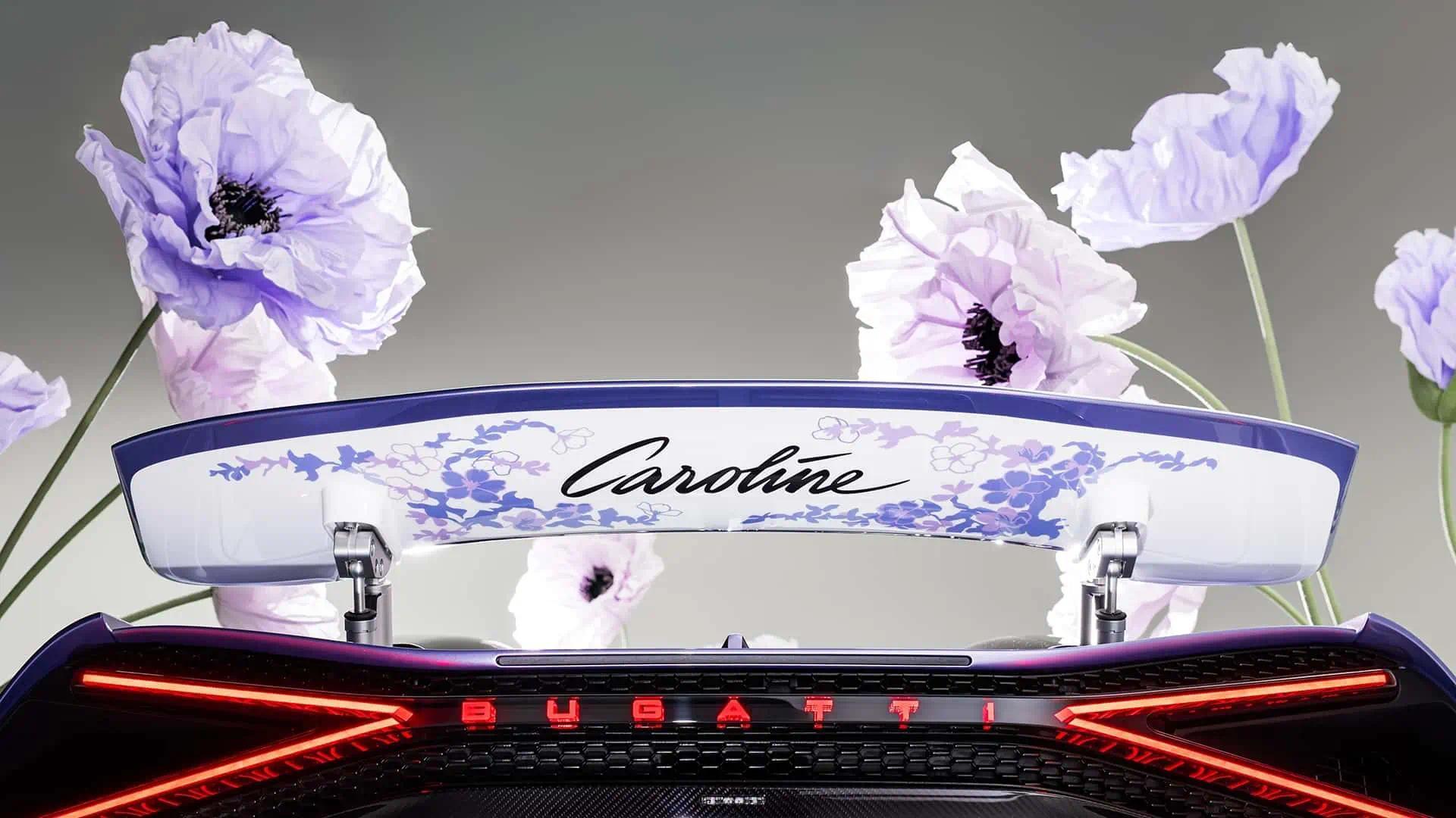 布加迪提到,车主通过Sur Mesure定制程序来为其量身定做新车,通过布加迪Molsheim和Berlin Design Studio工作室完成设计选定,其中“Caroline"取自其女儿名字,旨在将情感和感受转化为形状、颜色和材质。