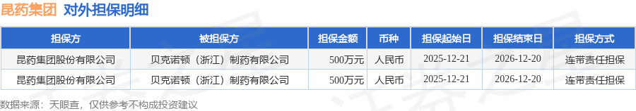 昆药集团12月22日披露2笔对外担保在线炒股配资,被担保方为贝克诺顿(浙江)制药有限公司。对外担保明细如下表: