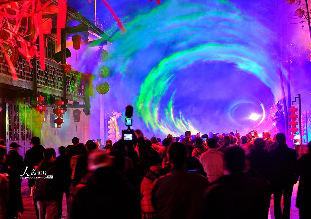 夜幕下,古街灯笼高悬炒股配资门户网站,光影流转,游客移步换景,沉浸式体验天龙化水车的奇幻传说、感受土家先祖的浪漫爱情,在烟火气浓郁的街巷中重拾农耕野趣,多维度领略三峡车溪的人文生态之美,恍如一夜梦回千年秘境。史家民摄(人民图片网)